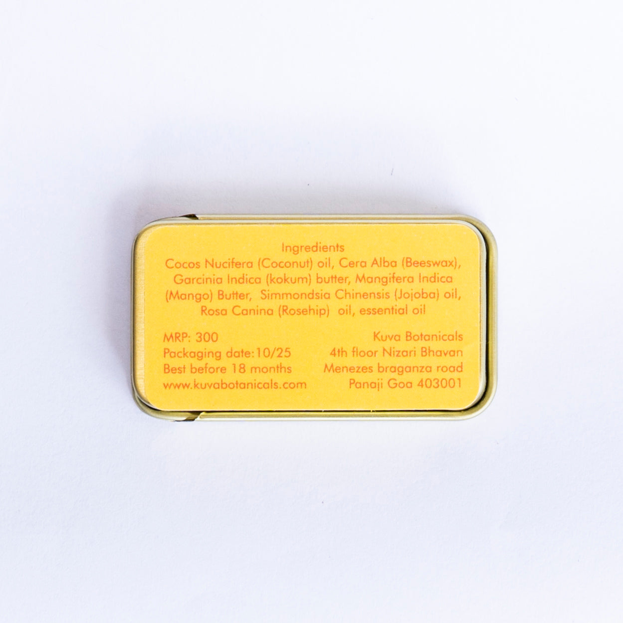 Made with a buttery blend of coconut oil, kokum butter, and mango butter, our mini lip balms melt on contact to leave your lips soft, glossy, and happy. Each one is naturally flavoured and lovingly packed in an eco-friendly aluminium sliding tin — perfect for pockets, pouches, and beach bags alike.